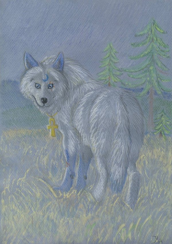 Musim říct že tohle je opravdu moc povedený obrázek, jestli jsi dřív vlky nekreslila, tak jsi opravdu dobrá a rozhodně pokračuj. Srst je jako živá a ty oči mě uplně zamrazují... Obloha opravdu vypadá, jakoby pršelo, což úpodle zbytku obrázku nemá, takže na to bych si (i když sis zvolila papír s hrubější struktutou) dala pozor ;)