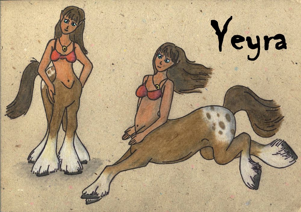Takový jednoduchý character sheet co? Vůbec to nevypadá špatně. Fakt se mi líbí ten postoj zepředu. Koukám, že ta koňská část už ti moc problémy nedělá. I když vlastně ani ta lidská není špatná, ale je fakt, že na té skákající poze ty ruce bijí do očí. Možná stačilo jen udělat každou v jiné poloze. Taky jsem koukala, co se mi nezdá na těch očích. Příště až budeš chtít do očí udělat odlesky tak je nedělej každý z jiné strany, takhle to potom vypadá jako bys šilhala.